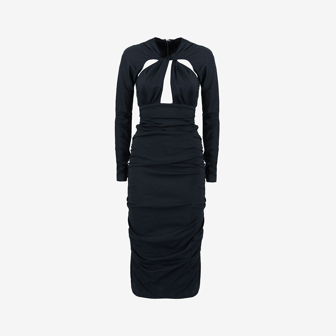 Arricciature laterali elasticizzate per valorizzare la silhouette.