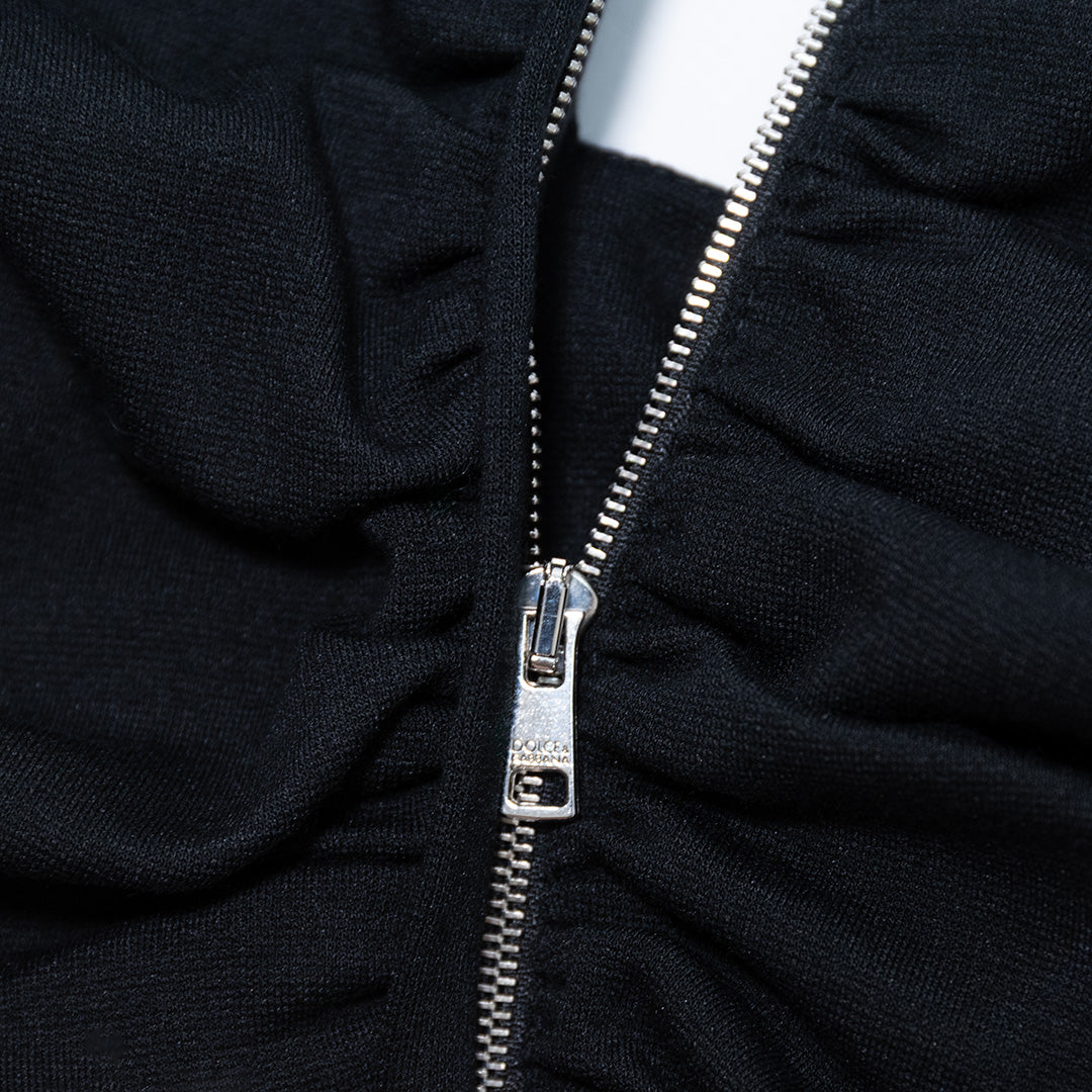 Chiusura posteriore con cerniera nascosta nella cucitura.