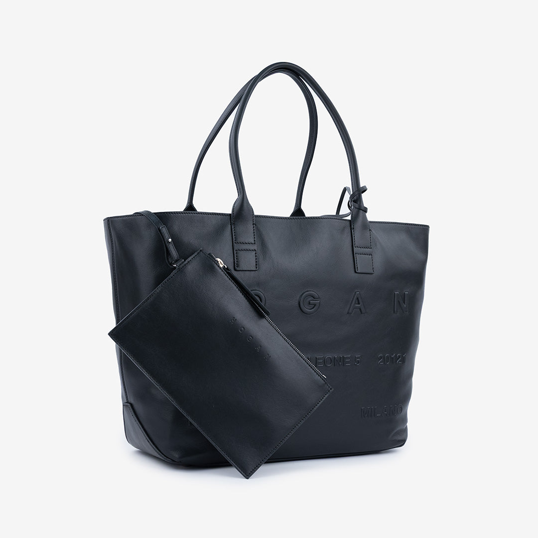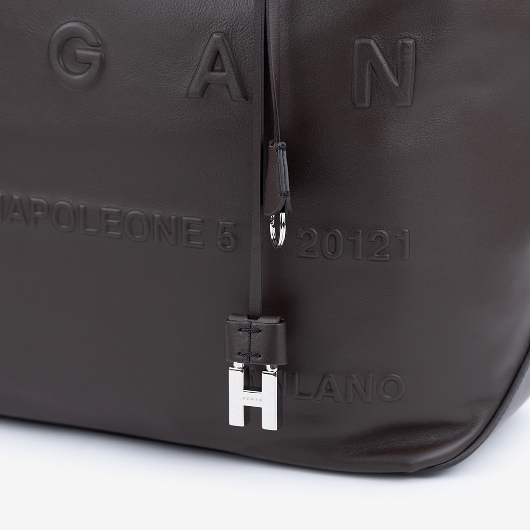 Address Shopping Media Bag con dettaglio in rilievo - Logo indirizzo via Monte Napoleone sul davanti.