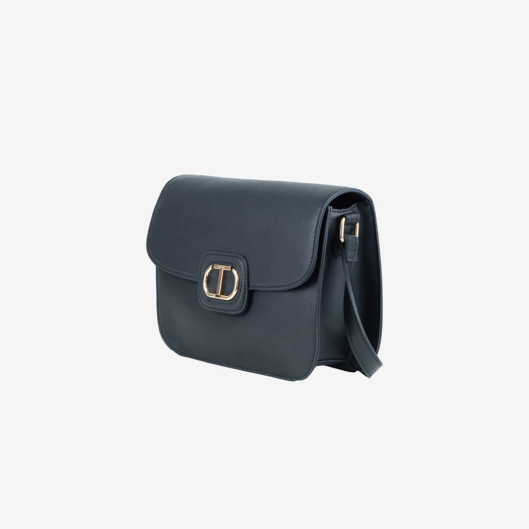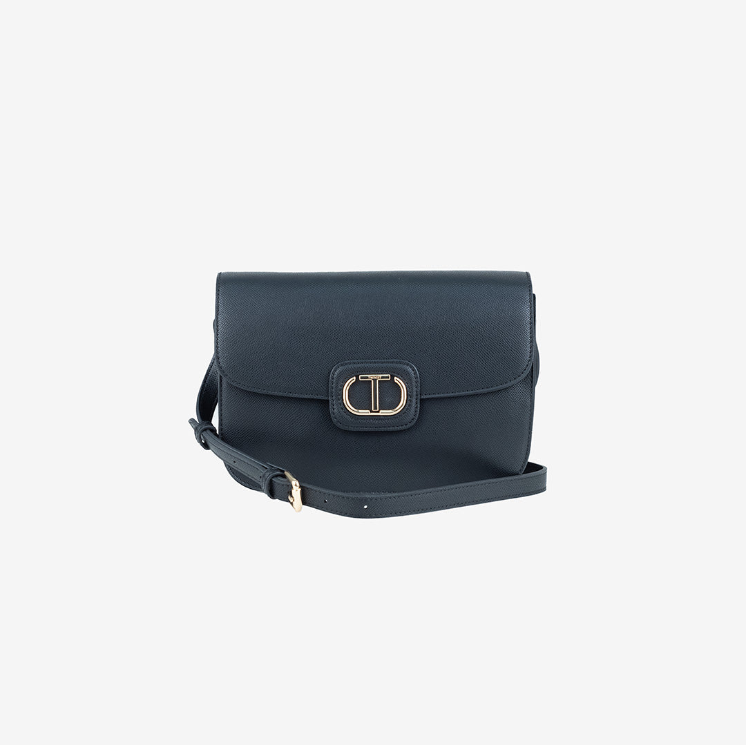 Borsa a tracolla realizzata in ecopelle effetto bottalato.