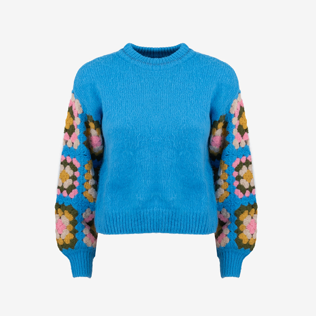 Collo rotondo e maniche lunghe.