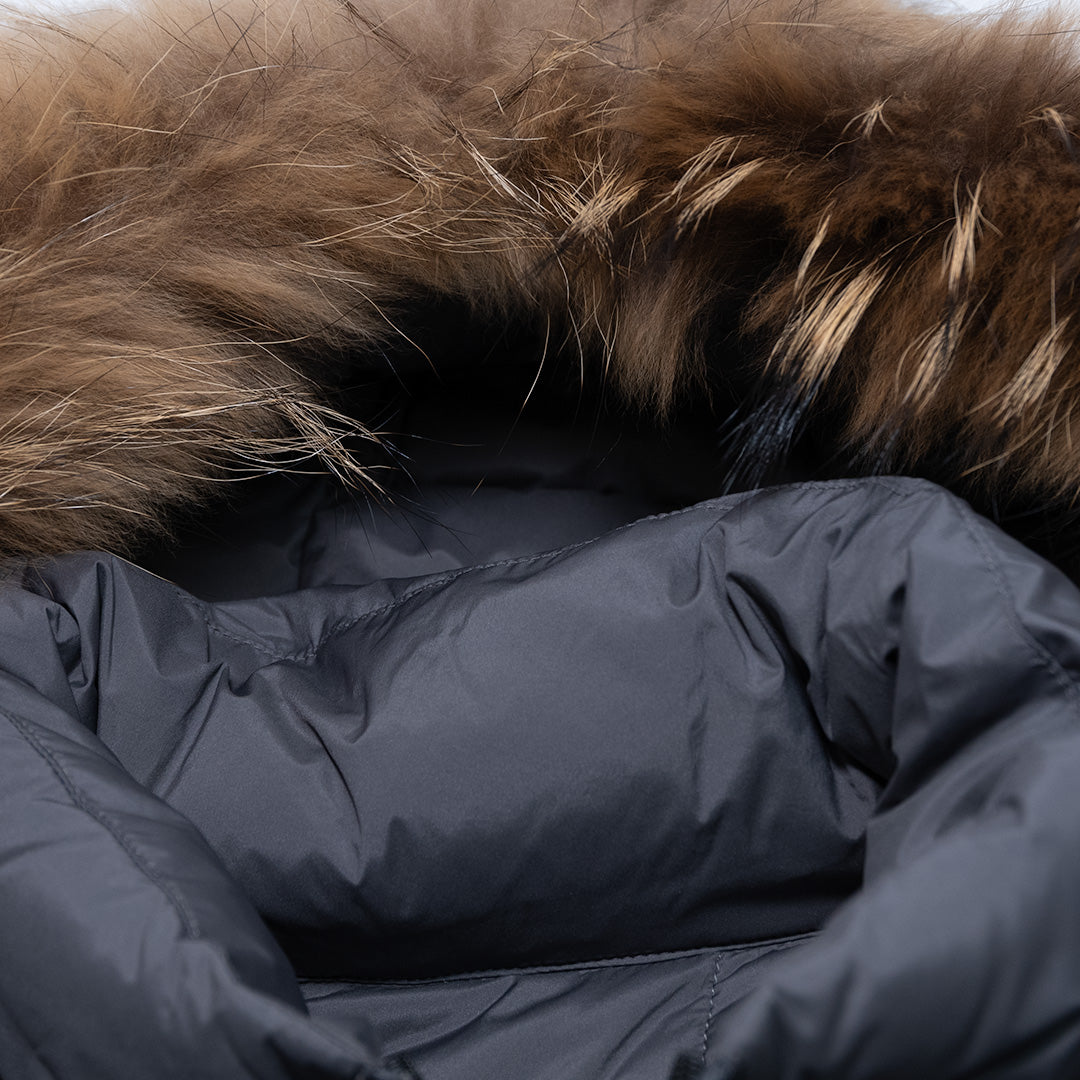 Cappuccio non rimovibile con pelliccia rimovibile.