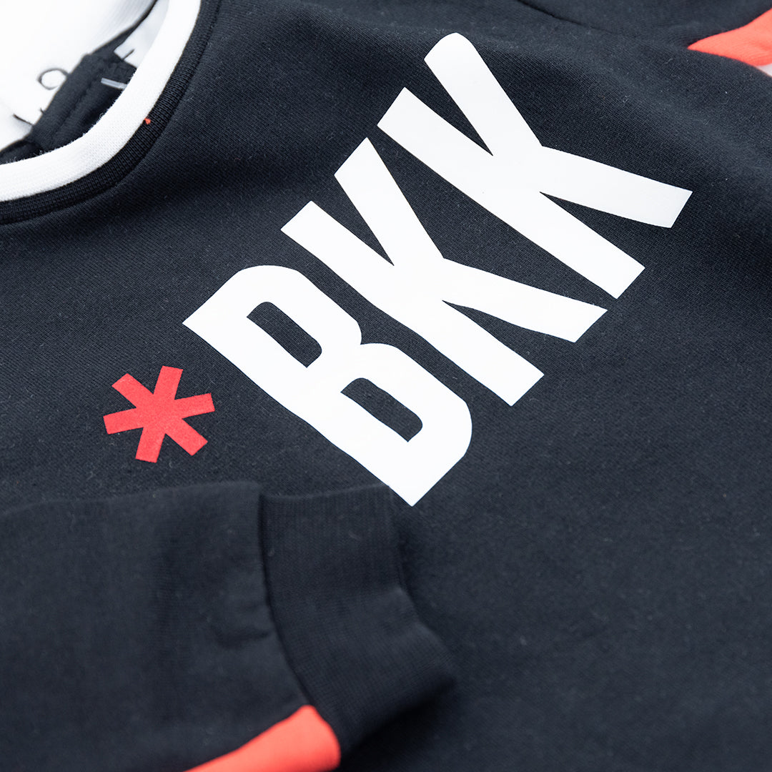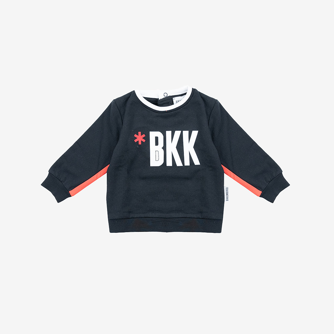 Felpa girocollo con logo frontale e bottoncini a pressione posteriori.