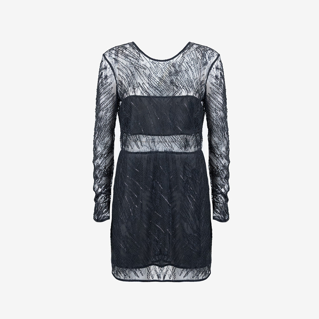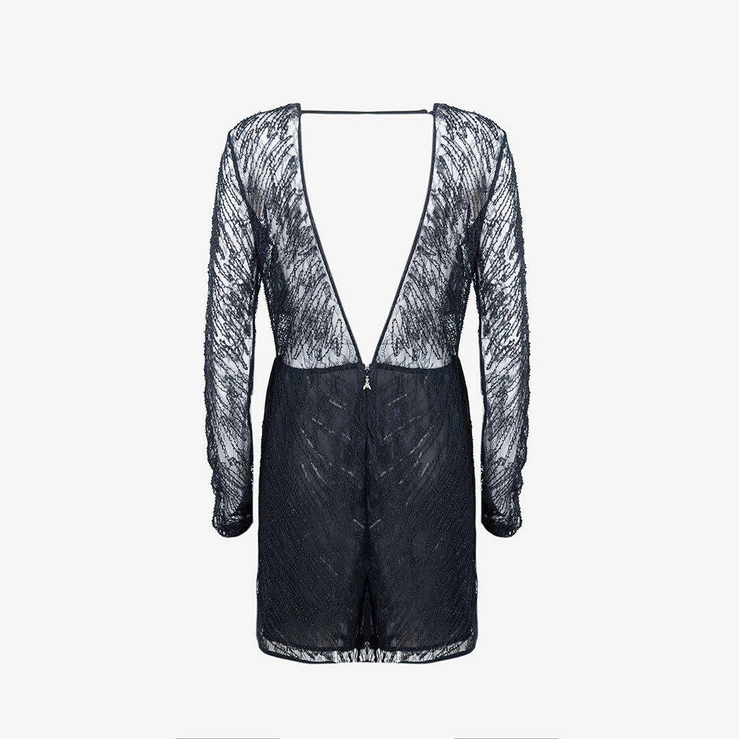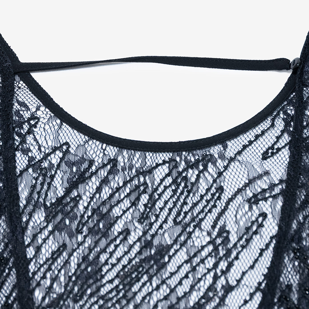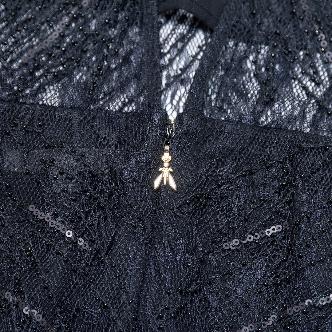 Chiusura posteriore con cerniera nascosta nella cucitura.