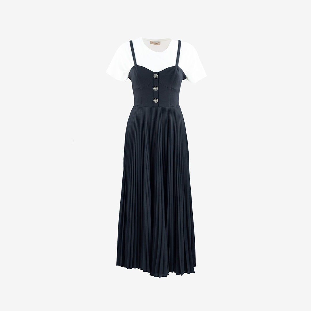 Abito lungo realizzato con gonna plissettata e spalline fine.