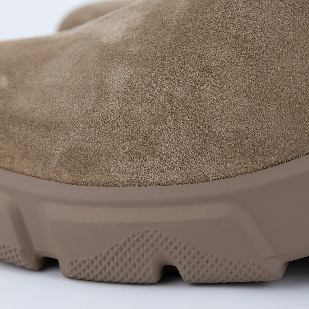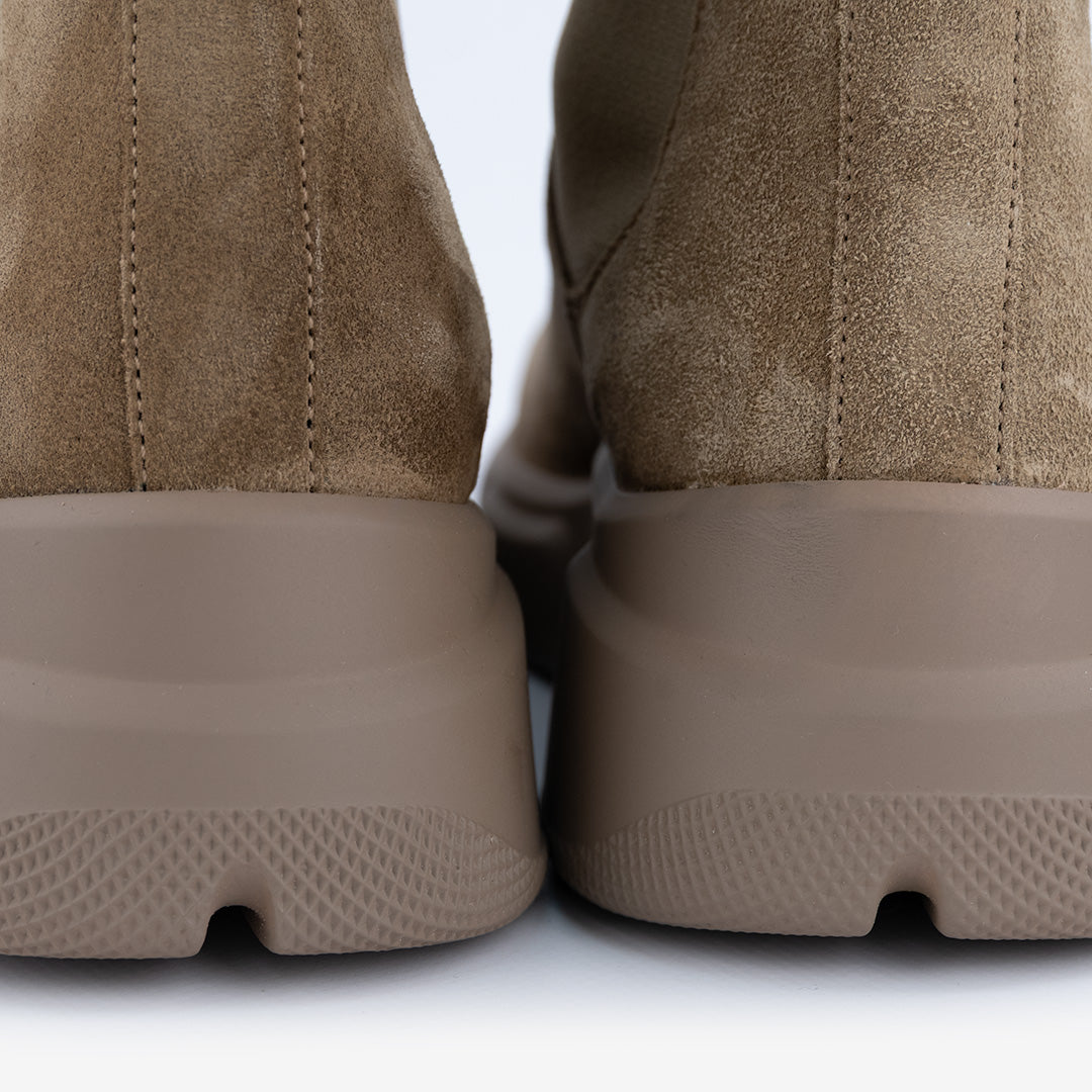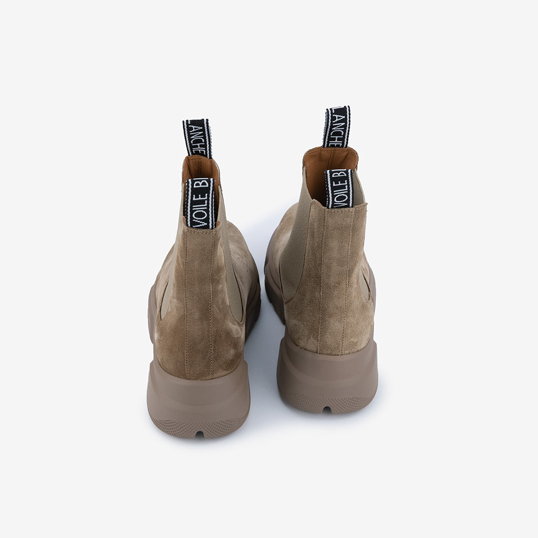 Tomaia con inserti in pelle scamosciata.