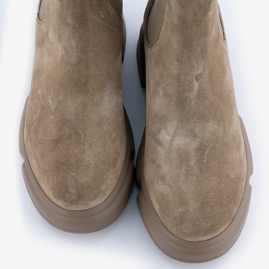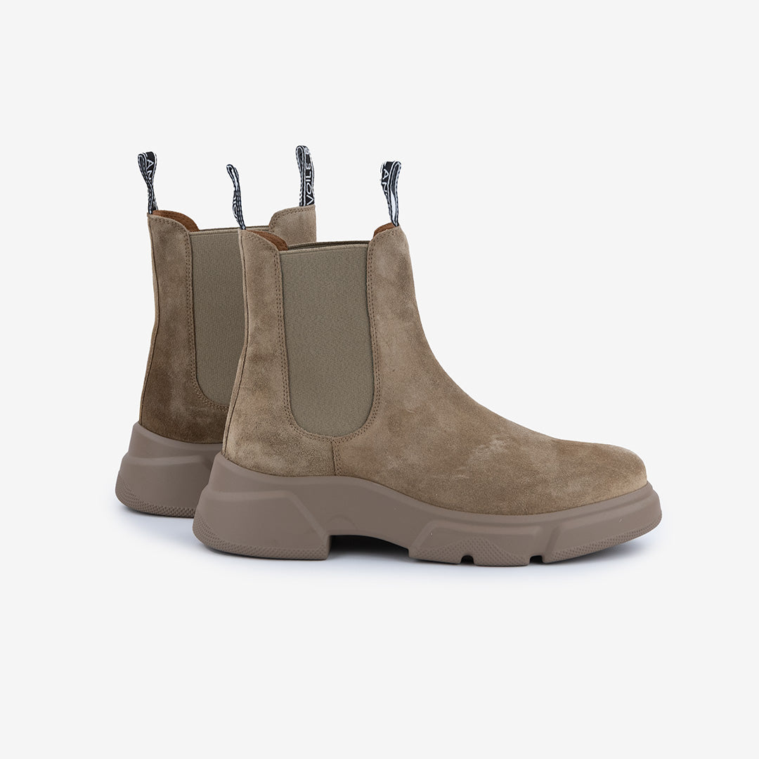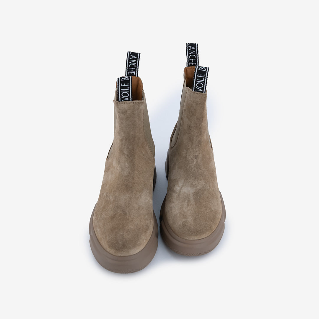 Tomaia con inserti in pelle scamosciata.