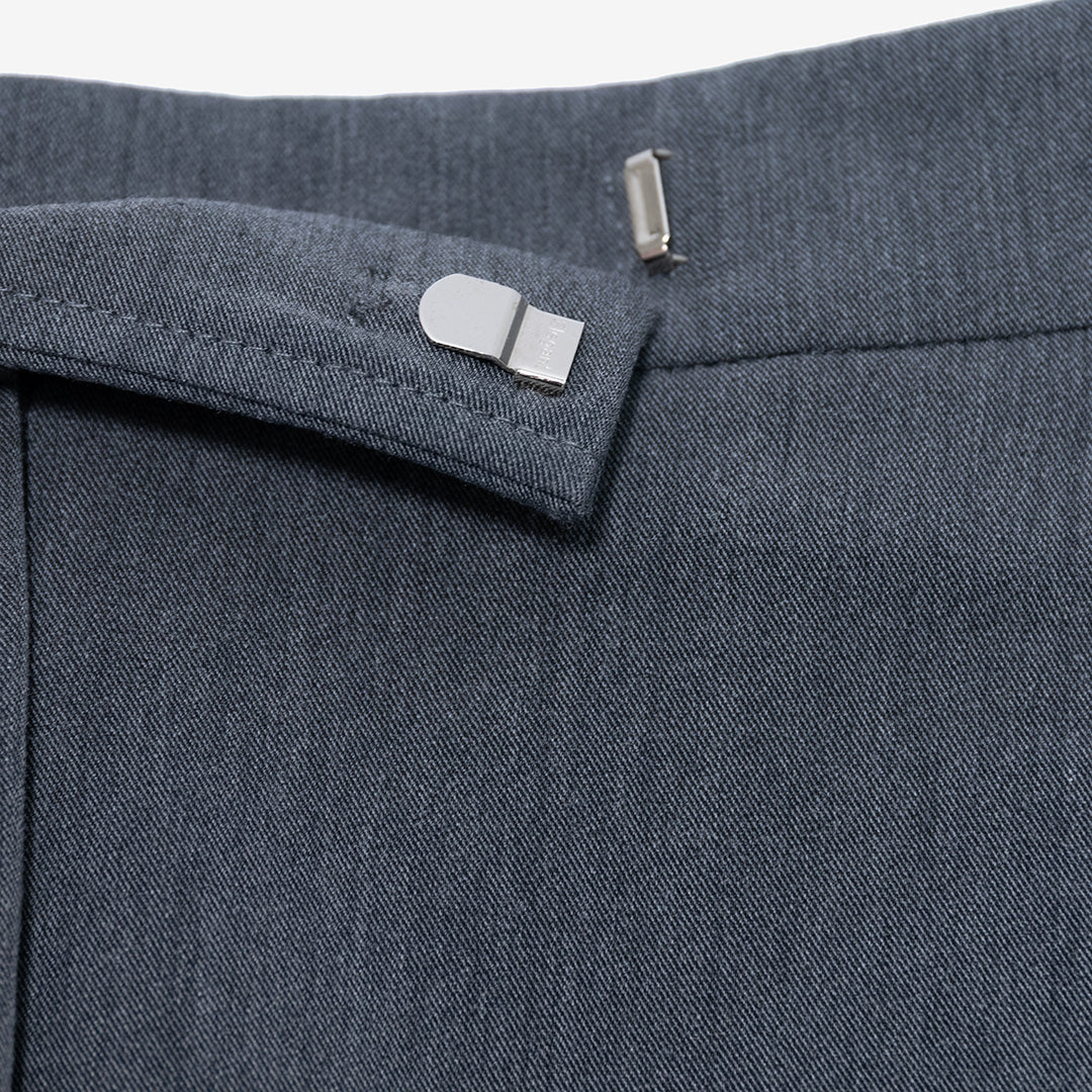 Chiusura frontale con cerniera e bottone.
