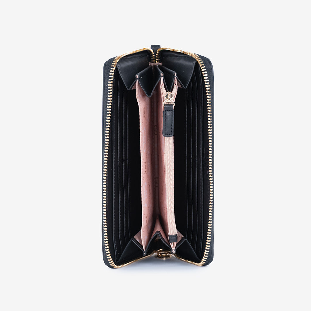 Composto da scomparti porta carte, porta documenti, porta banconote e porta monete.