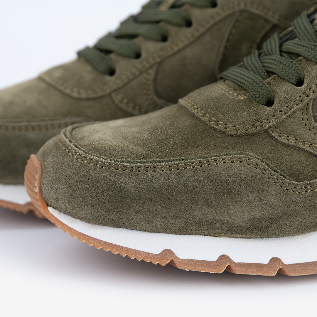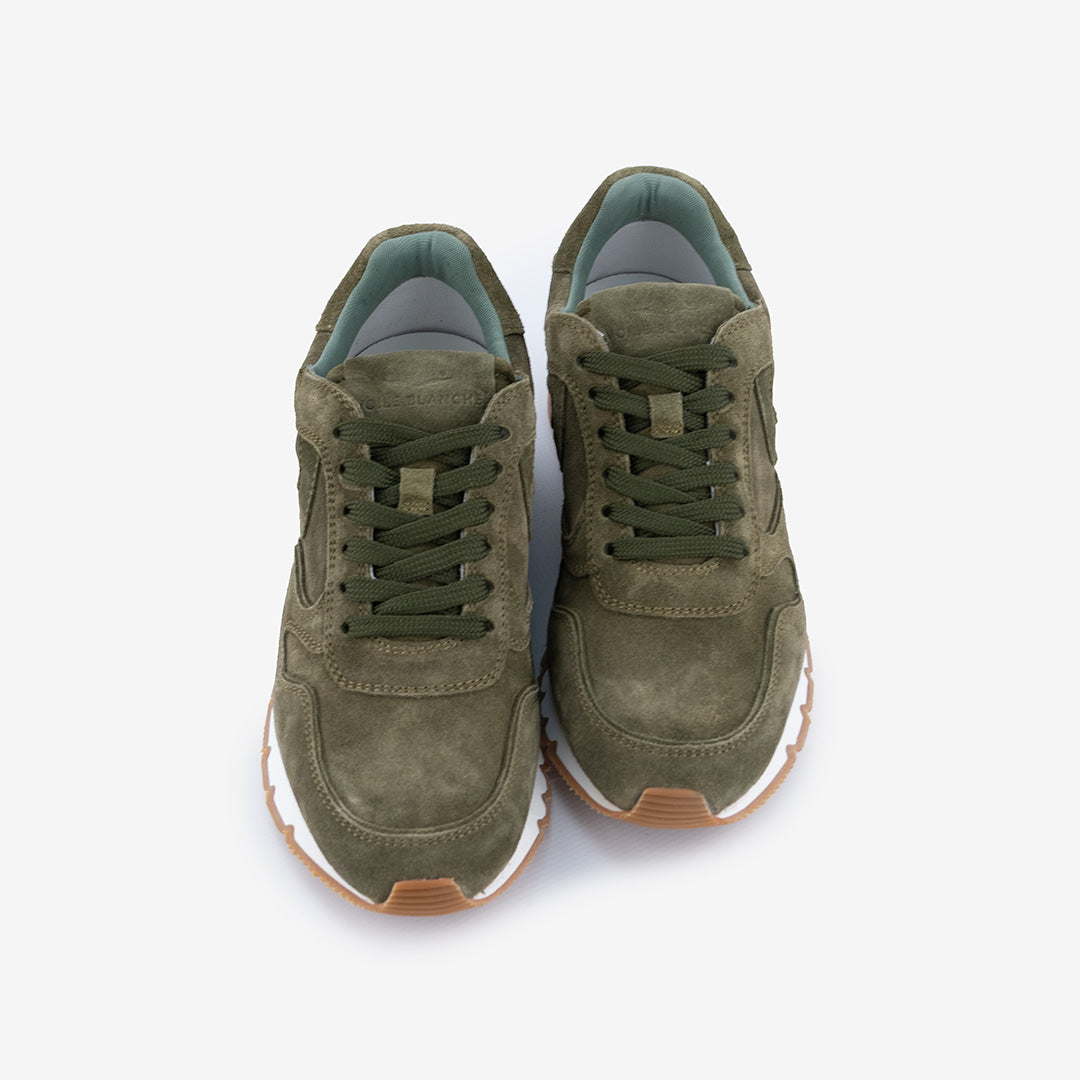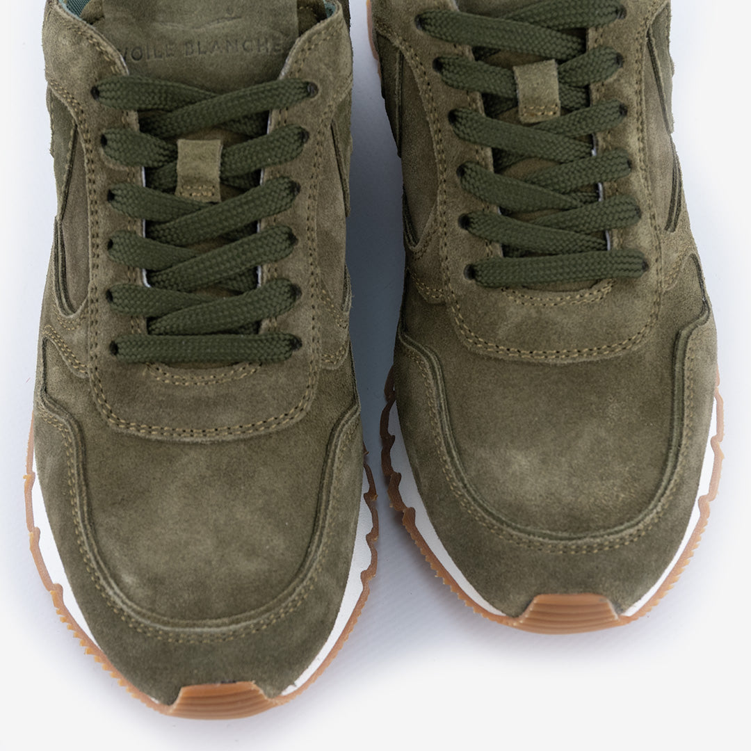 Tomaia in pelle scamosciata.